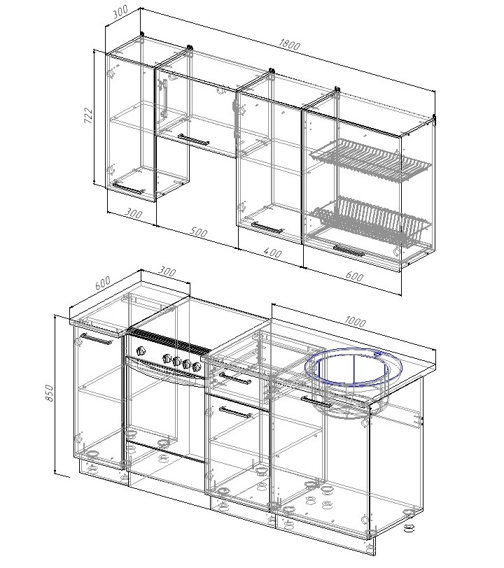 Ширина кухни 1800мм