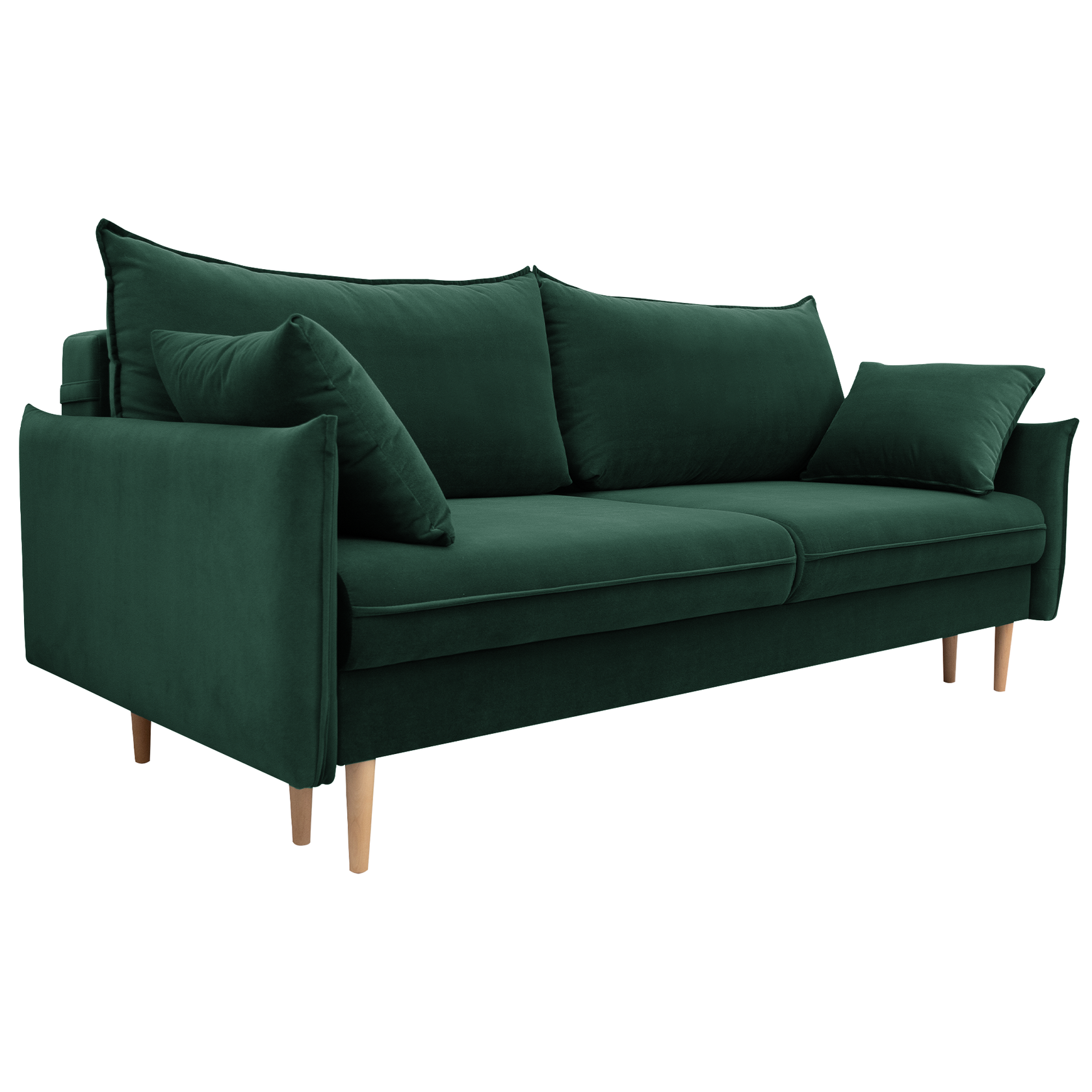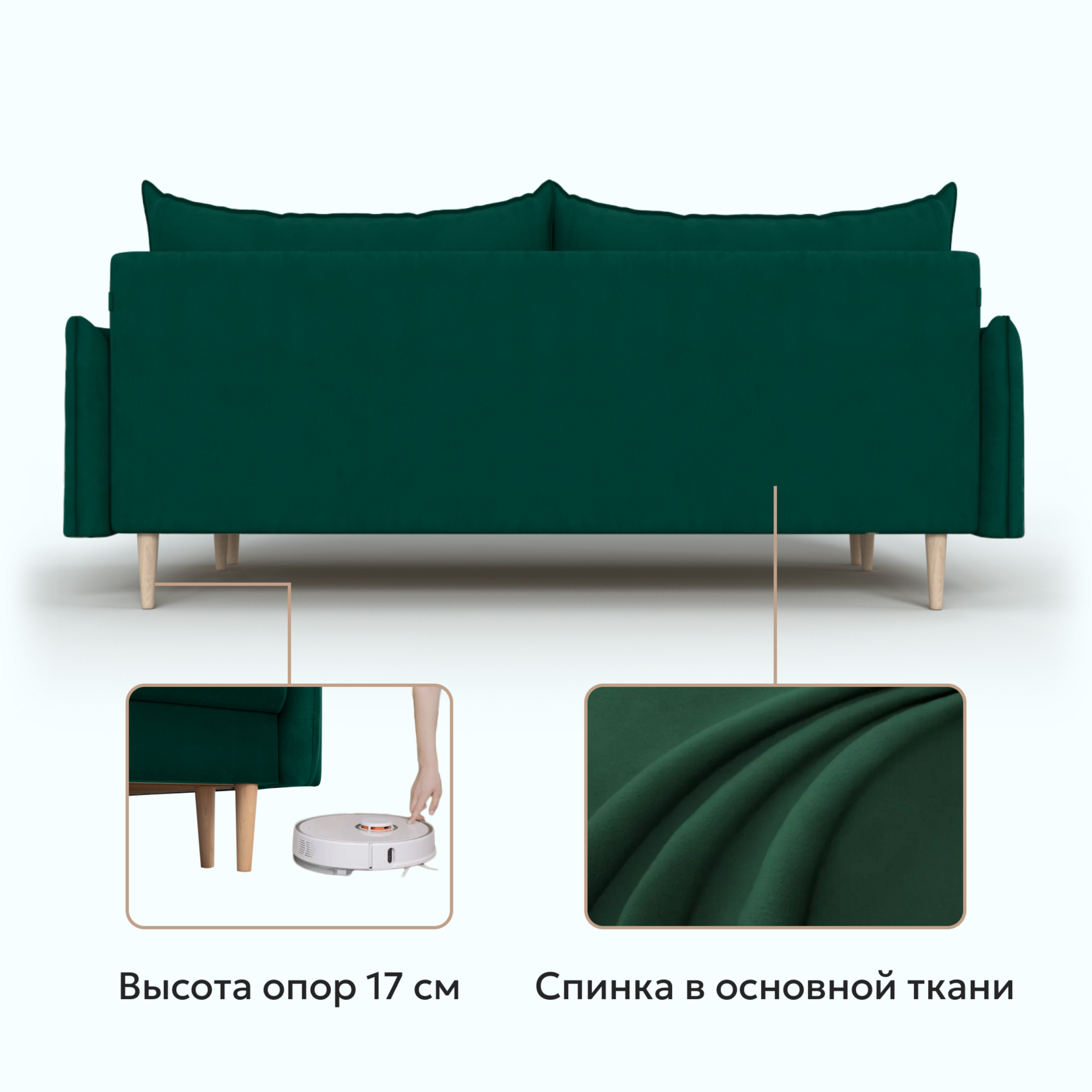 Диван-кровать Фьорд — один из классических представителей скандинавского стиля. Он минималистичен и привлекателен. Аккуратные строчки, ножки из натурального массива березы и нежная велюровая обивка — продумана каждая деталь.