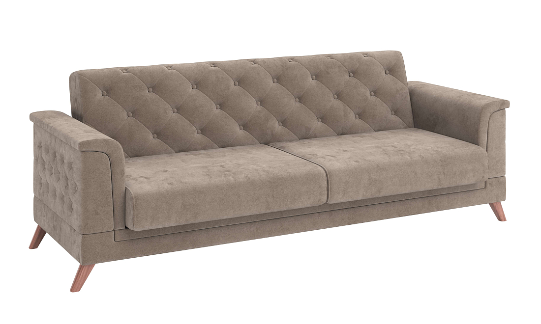 Диван - кровать Амарант исполняется в классическом стиле и спокойных цветах. Модель сочетает в себе простоту и функциональность, но при этом не выглядит громоздко. Она гармонично впишется в пространство, не утяжеляя его.