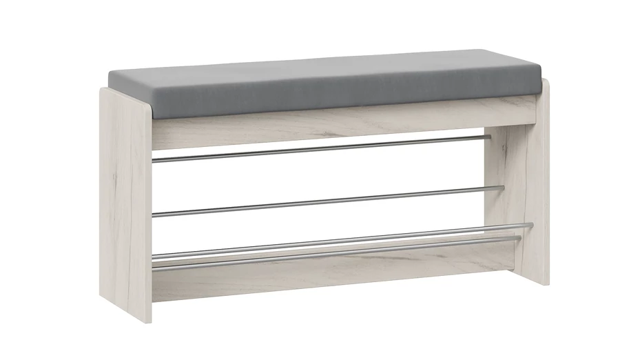 Тумба для обуви «Тайм» - это прекрасный выбор небольшого и функционального предмета мебели, который оснащен открытыми полками, что позволит быстро найти нужную пару обуви, а мягкое сиденье сделает процесс переобувания комфортным.