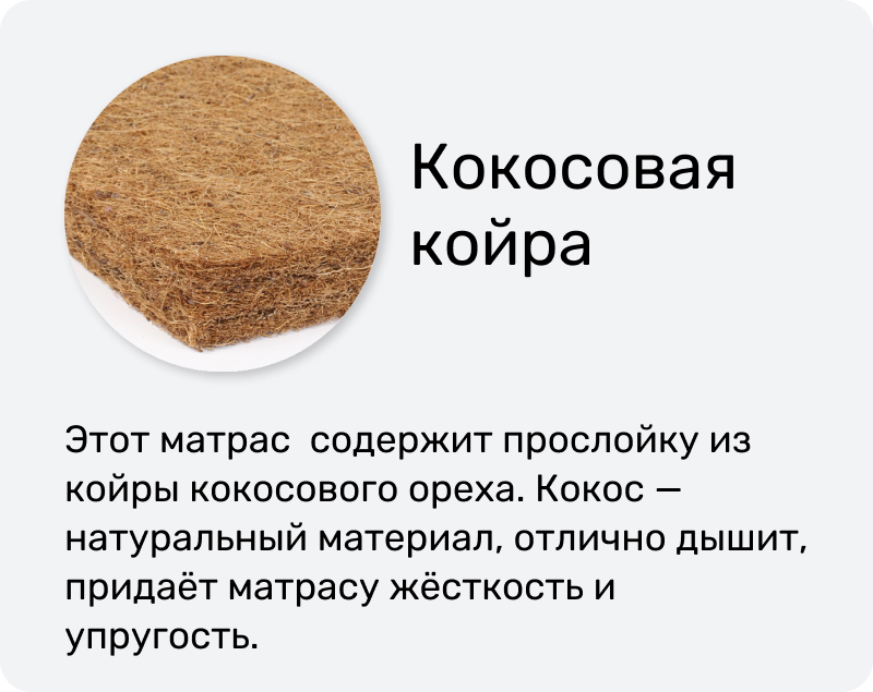 Кокосовая койра, делающая матрас более упругим и умеренно жестким;