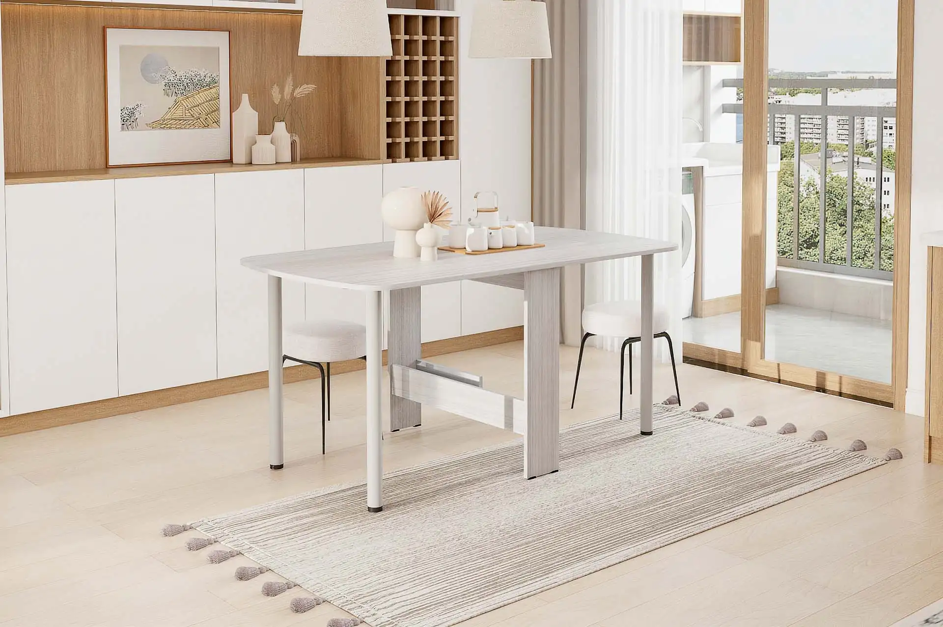 У нас есть идеальный стол-книжка, размеры которого впишутся в любое пространство. Опоры стола металлические с регулировкой.