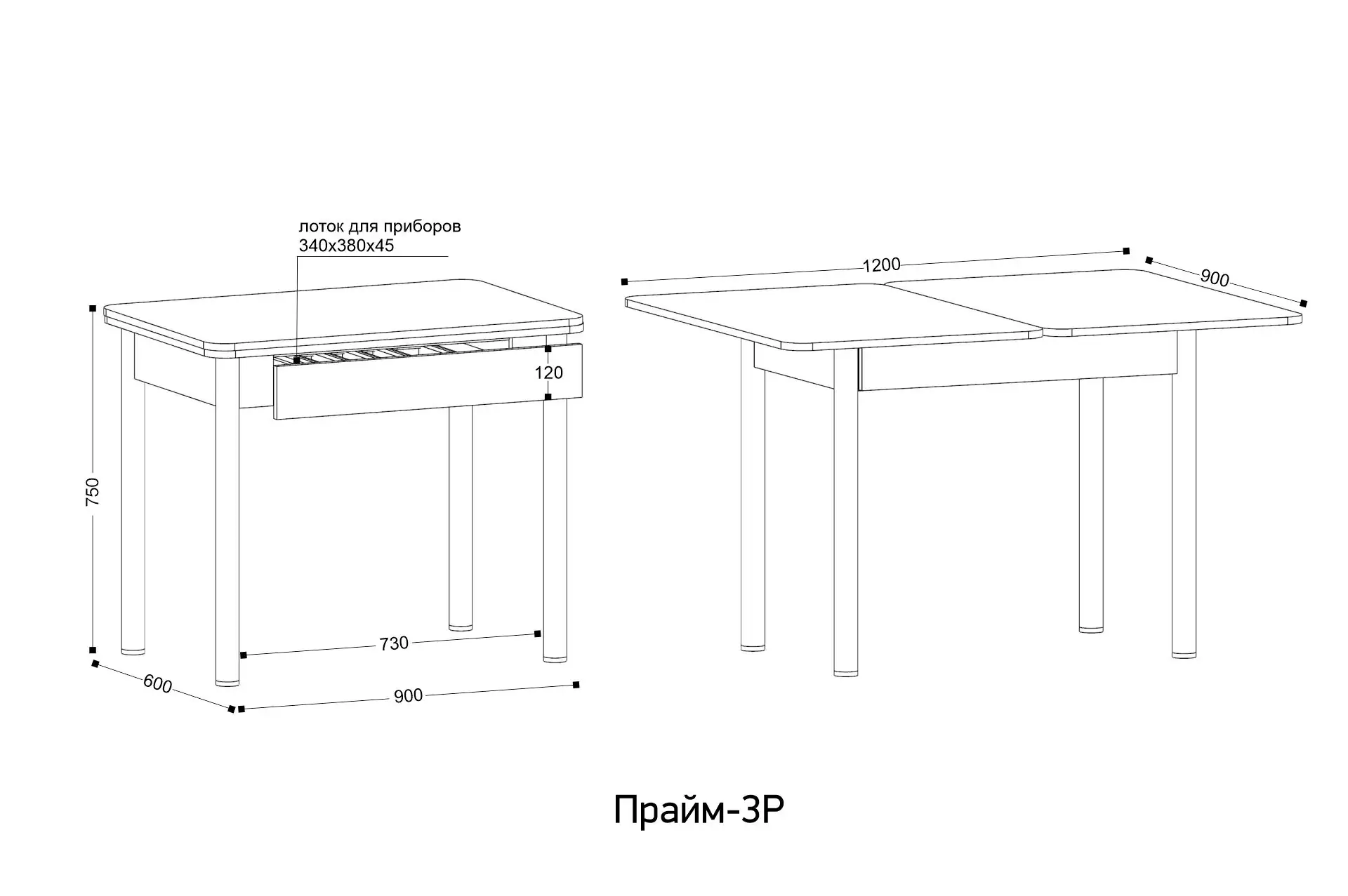 Ширина: 1550 мм | Глубина: 830 мм | Высота: 735 мм